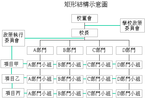教育行為的發展,隨著社會的進步而由單對單的個體行為,逐步變成群體社會化的組織行為。而學校的產生,為這種發展予以更具體的組織表現。它同樣具備了一般組織所應有的特徵:群體、目標、結構、活動。香港的學校更明確地表現出其科層組織體制的特性:分工、層級、理性、規章、資格、管理。但傳統的科層體制的某些原則已顯然不能適應現代社會發展需求,並阻礙了組織目標的完整實現,所以我們建議從學校組織結構、協調管理入手,採取矩形結構模式,建立及完善委員會制度,加強水平方向的溝通,有意識地讓教師和學生參與學校管理決策。並逐步引進全面質量管理(TQM)的方法,改善組織內部活動每一細節的工作質量與工作效率,尋求出實現高效能學校目標的有效通道。